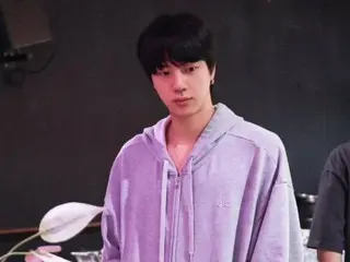 He posted a photo with the caption, "It was filled with flavor. The afterglow is full." The photo shows JIN eating a delicious meal.