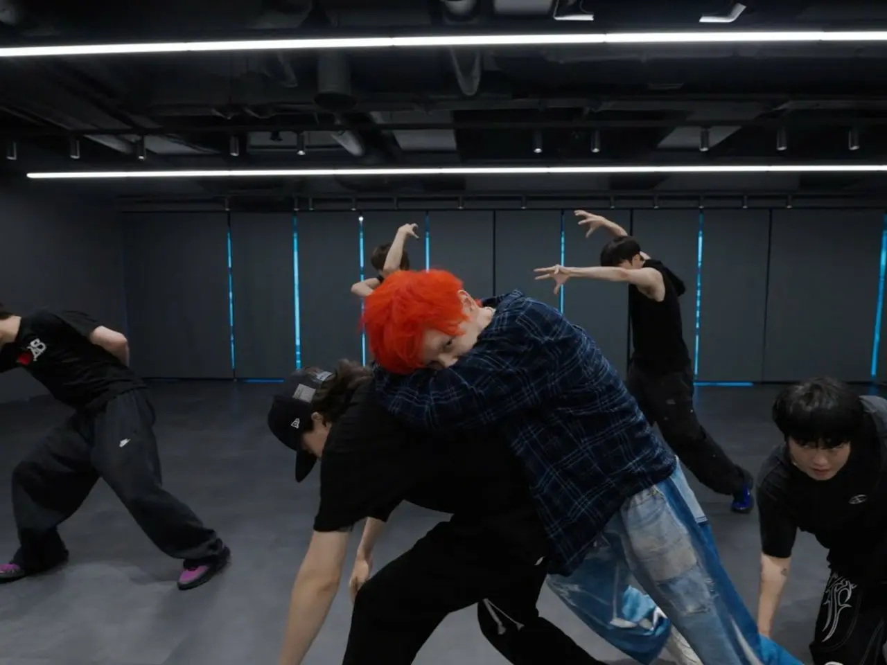 In the video, KEY practices the choreography for his new song "HUNTER" with his dancers in the practice room.