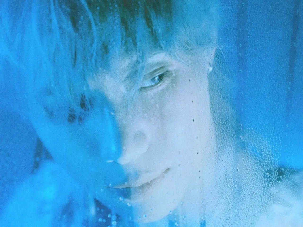 The released photo is the "WET" version of the concept photo for the new song "Veil," in which she is wearing a white tank top and blue lighting.