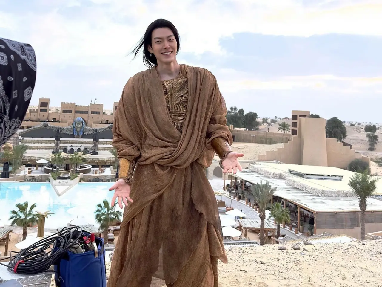 In the released photo, Kim Woo Bin is smiling and wearing a brown outfit against the desert background. Her long hair and exotic outfit harmonize to create a unique and mysterious atmosphere.