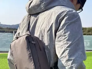 He completed his relaxed style with a light gray windbreaker and black pants, and exuded a natural charm as he closed his eyes and felt the sunlight.