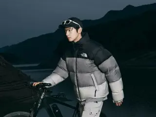 Cha Eun Woo was also pictured cycling in a down jacket outfit, matching it with a cap and sunglasses.
