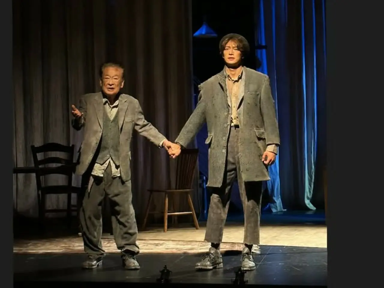 The sight of them holding each other tightly drew attention. The two previously co-starred in the play "Waiting for Godot."