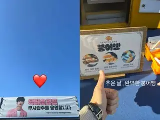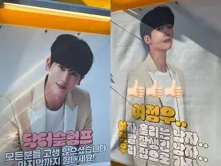Park Hyung Sik causes excitement with his peaceful visuals. On the car was a photo of Park Hyung Sik along with a message that read, ``Thank you to everyone at Dr. Slump for your hard work. Please do your best until the end.''