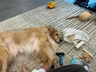 is attracting attention. Simba was lying down looking comfortable, but after the brushing, he looked exhausted. Jung Shin captioned the photo, ``Always say that.