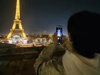 Netizens who saw this commented, ``Thanks to my oppa, I got to see Paris,'' ``Wow, the Eiffel Tower is so beautiful. Thank you for the photo,'' ``Thank you for sharing this precious moment,'' and ``The glittering photo.