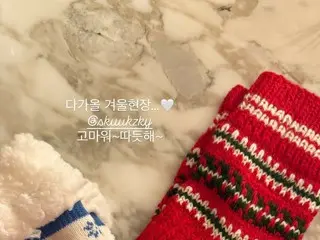 Actor Song Hye Kyo boasted about the socks she received as a gift from Suzy (former Miss A). On the 28th, Song Hye Kyo said, "Winter is approaching on set... thank you~ they're warm~"
