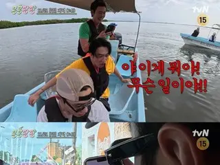 Lee Gwangsoo, who is particularly timid, tried to feed fish to frigate birds, exaggerating, "Don't bite me!" and "It hurts!"