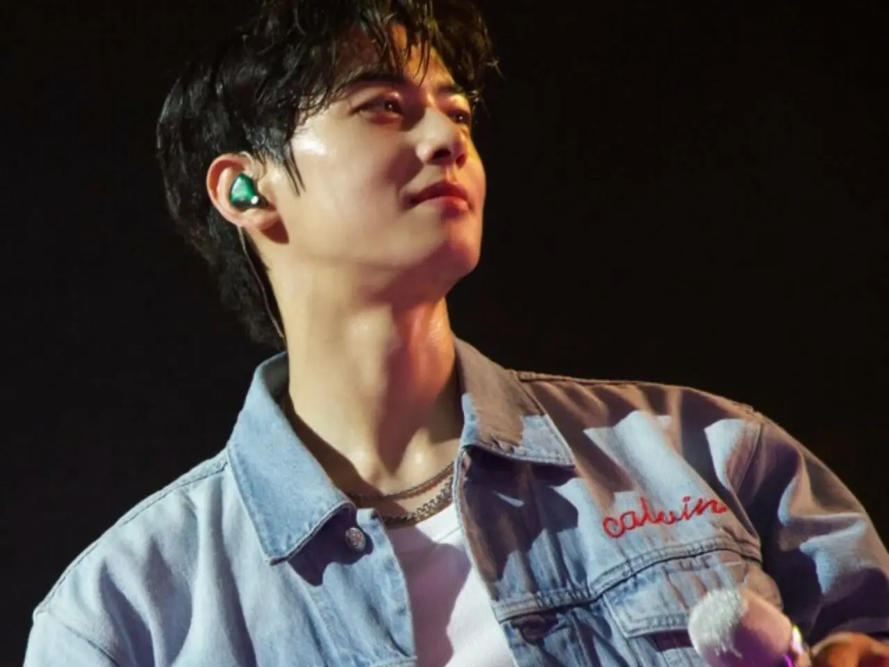 The photo shows EUN WOO wearing Calvin Klein jeans. He was sweating while performing on stage and interacting with his fans.
