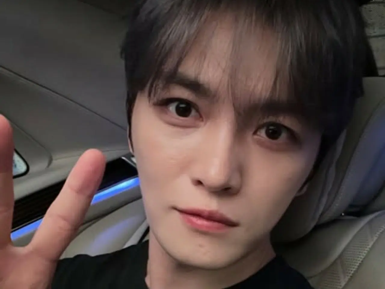 The photo was posted with the caption. The photo shows Jaejung apparently traveling in a car. Jaejung is wearing a simple T-shirt and making a peace sign towards the camera.