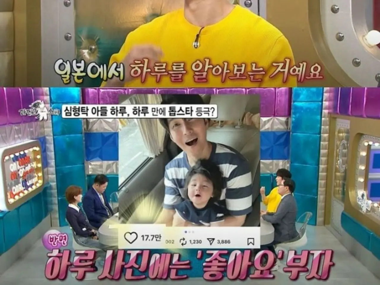 He added, "When Haru appeared, the show recorded the highest viewership ratings in the past three months," and "the viewership rating was 5% at the time." He added, "When I revealed my child, my wife was very worried.