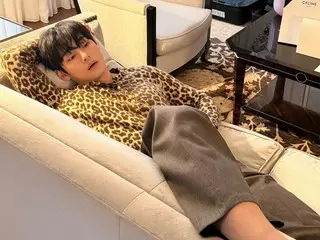 In another photo, V is seen lying on a sofa wearing a gorgeous leopard print shirt, boasting a decadent beauty. Following his boyish beauty, he exudes a masculine charm, drawing attention.