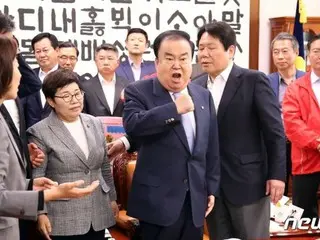● Mr. Moon Hee-san, a member of the ruling party's parliament and chairman of the parliament, touches the other party's cheek during a tongue war with the opposition