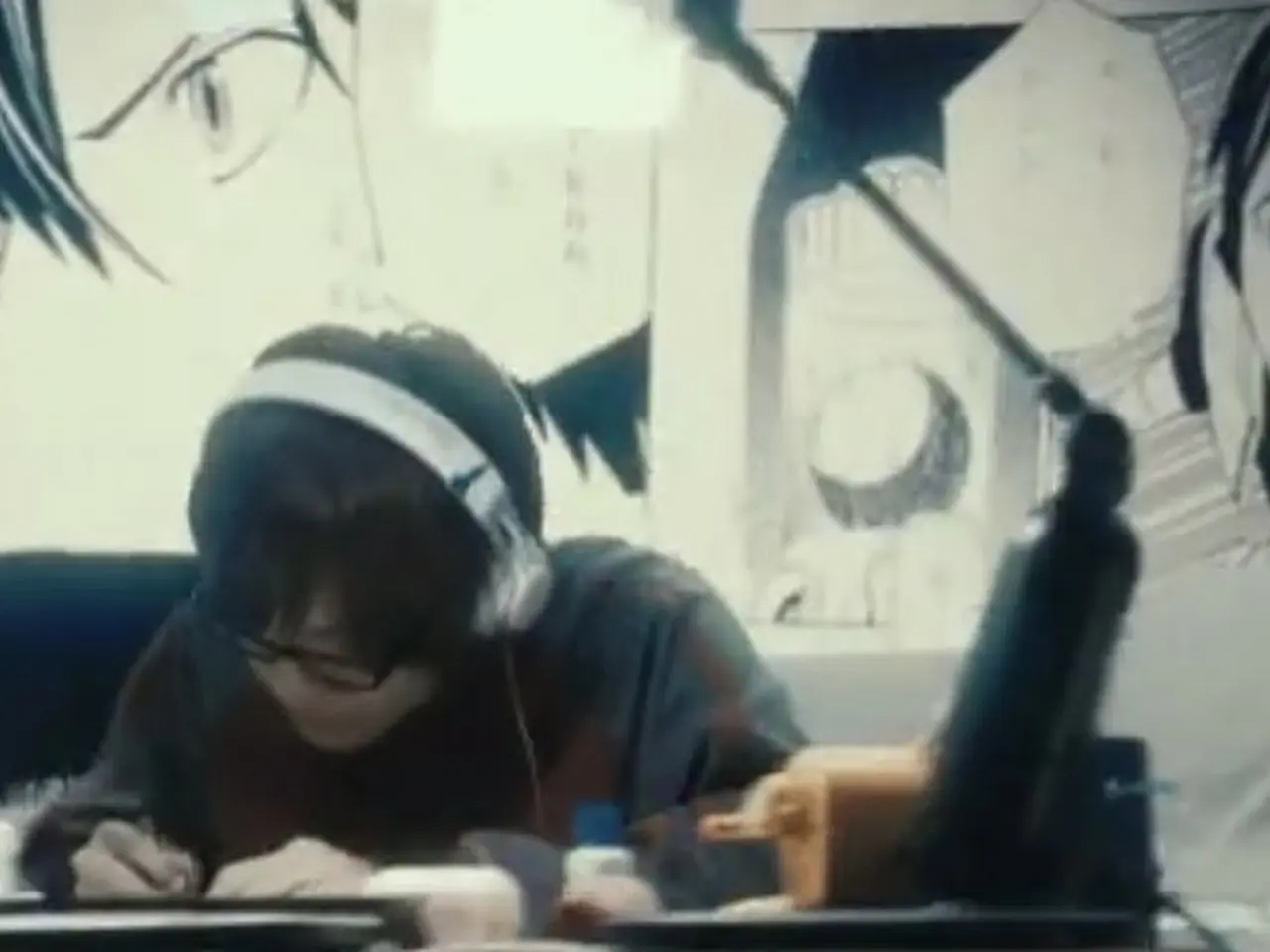 ● A scene in which an assistant draws a manga. Directing method in which the background of the room is shown changing as the manga currently drawn