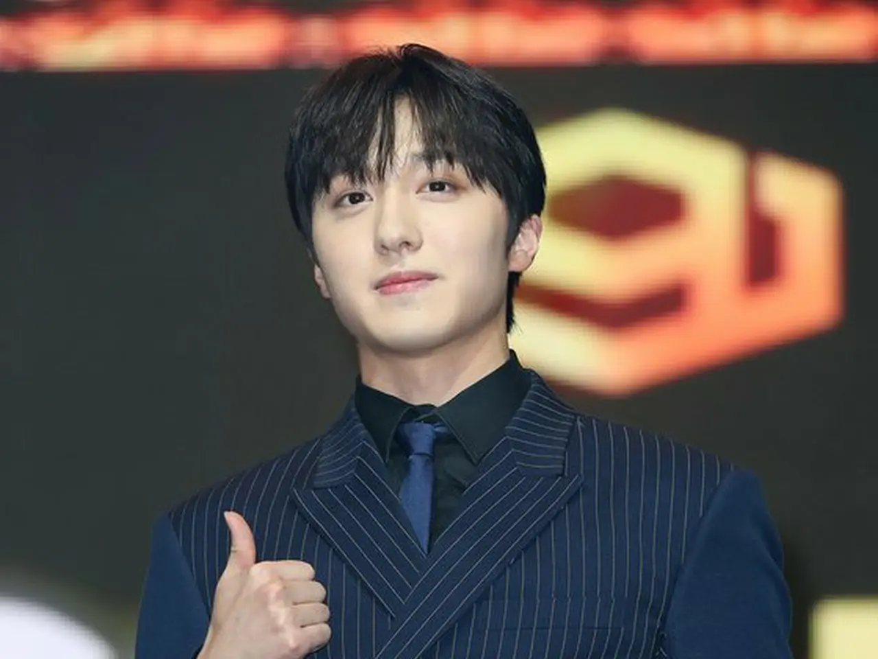 SF9's Yoo Tae-yang takes part in the opening ceremony to pray for victory for the Doosan Bears at Jamsil Baseball Stadium
