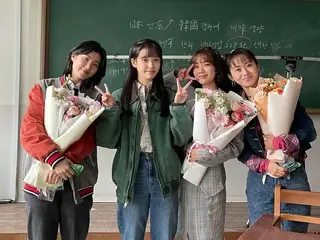 IU expresses her sad relationship with Moon So Ri and Park Hae Joon, and the gorgeousness of youth can be felt in the photo she took with her classmates from Seoul University holding bouquets.