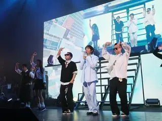 When the intro to PSY's "That That" started, the fans all shouted "Hey!" together, and the excitement in the venue increased even more. The festive mood continued with Bruno Mars' "Uptow