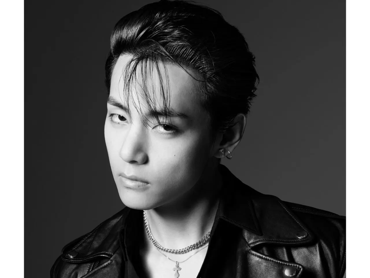 However, V's slim body line makes the Celine collection even more outstanding. V is pictured wearing a classic biker leather jacket and a Celine necklace.