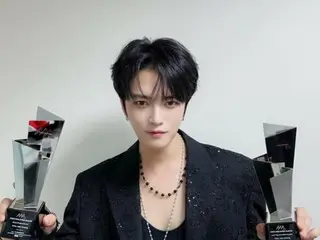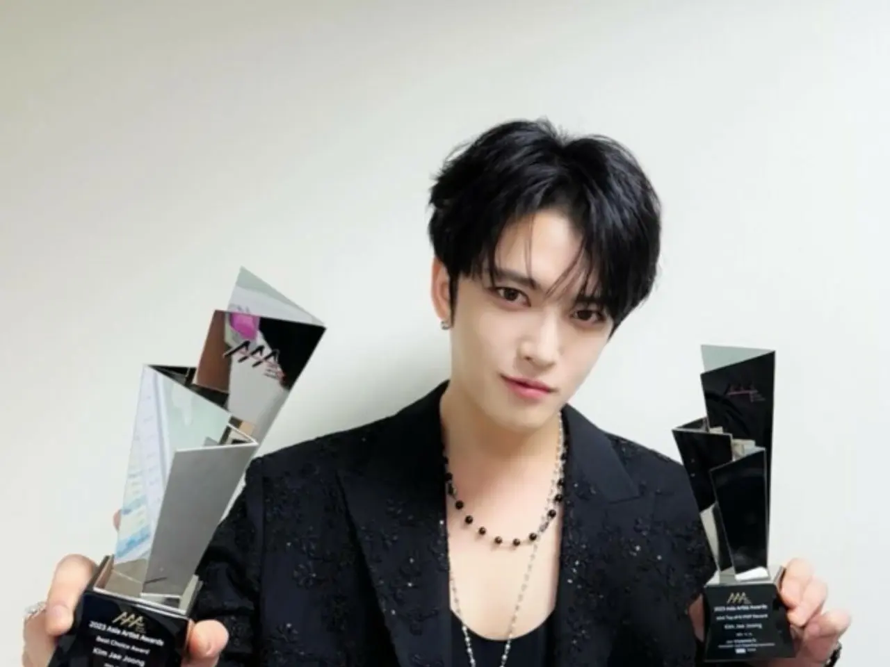 did. In the photo, JAEJUNG is seen holding two trophies in his hands. JAEJUNG's dignified appearance is drawing admiration.