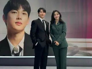 He gave a reaction like "Uh~". Siwan participated in the recording of ``Newsroom'' wearing a wonderful suit, which is 180 degrees different from Byung-tae in ``Boyhood,'' which recently finished airing, and showed it off in the studio.