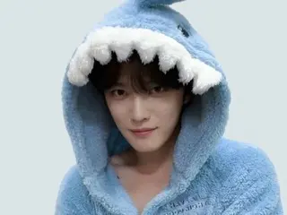 In the photo, JAEJUNG is seen wearing a free Suzy jacket with a hood shaped like a shark's head.