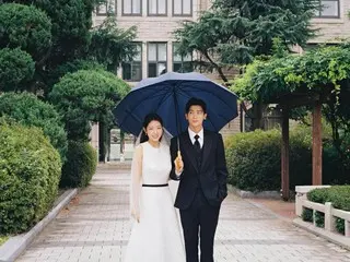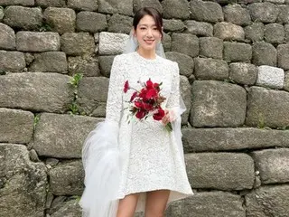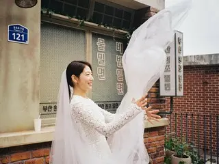 This photo appears to have been taken during the wedding photo shoot with Park Hyung-sik, who played the opposite role, in the recently aired TV series "Doctor Slump."