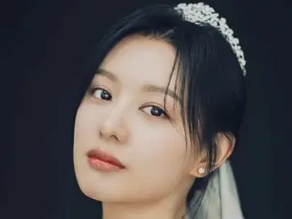 I'm showing you the visuals. Kim JiWoo-won also wears a tiara and a veil, holding a bouquet and staring at the camera. All eyes were on her beautiful figure, like a goddess.