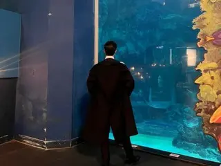 The photo shows Kim Soo Hyun's back as he seems to be engrossed in an aquarium. Kim Soo Hyun attracts the attention of viewers with her broad shoulders and tall figure.