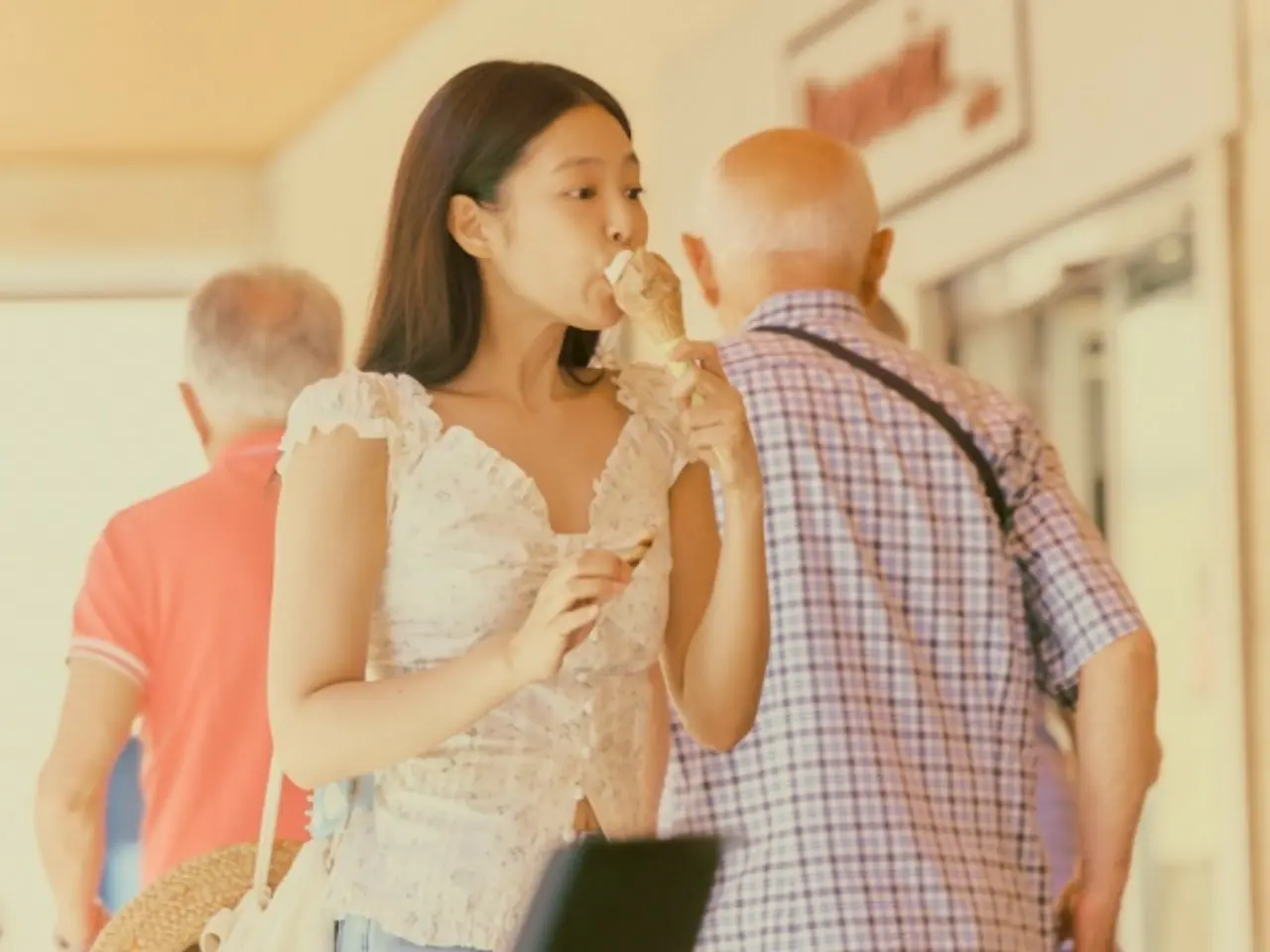 Jennie's appearance of buying and eating a traditional Italian dessert gelato and feeling a moment of freedom also catches the eye.