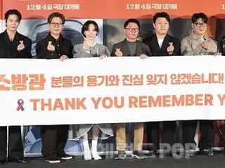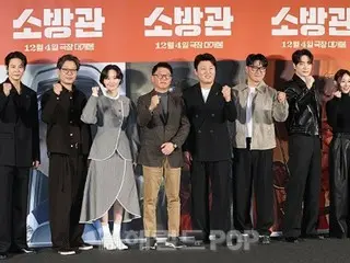 They attended the production presentation for the movie "Firefighter" held at CGV Yongsan in Hangang-ro, Yongsan-gu, and participated in a photo session.