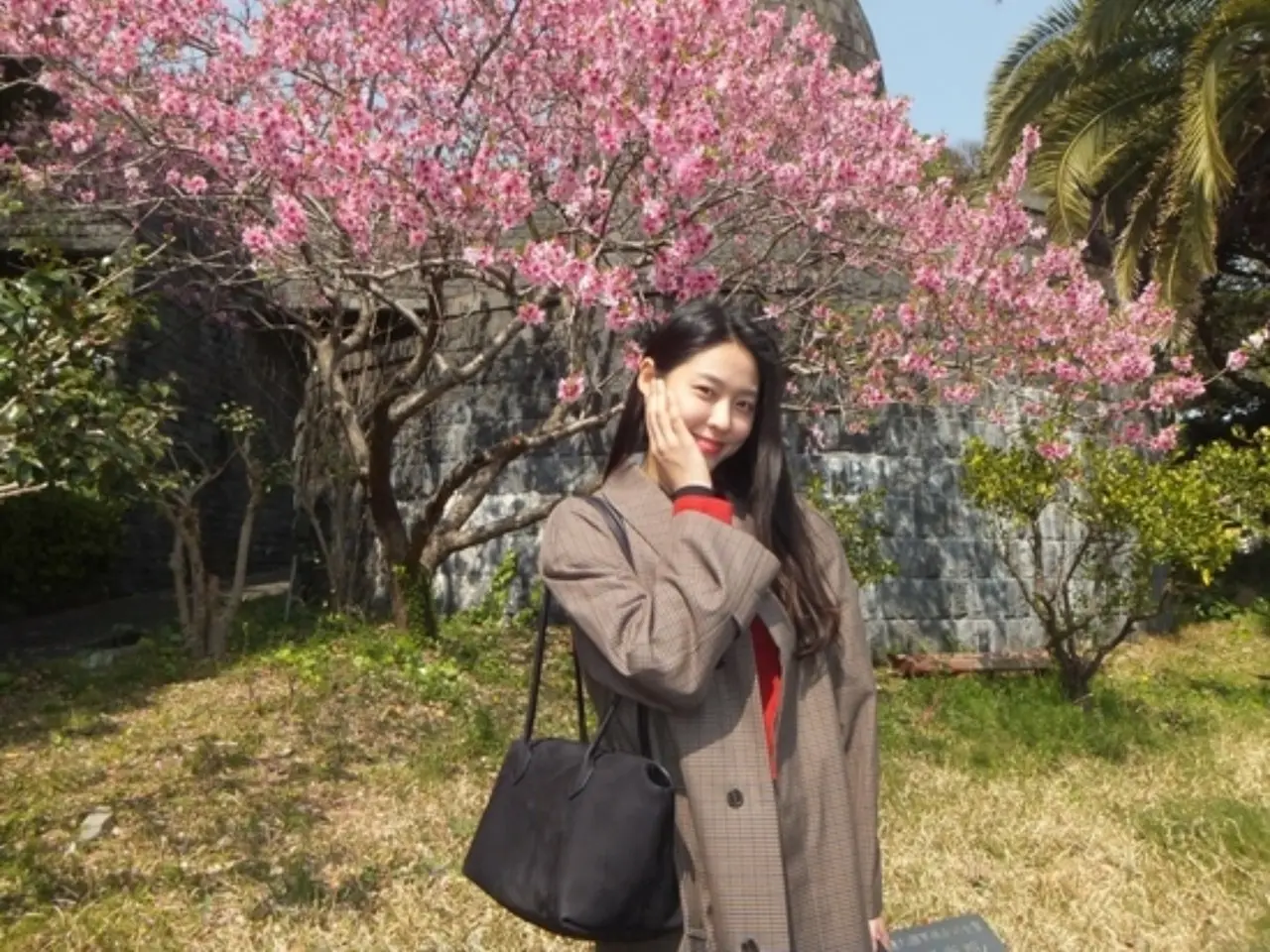 The photo released this time shows SEOLHYUN enjoying spring while cherry blossom viewing.