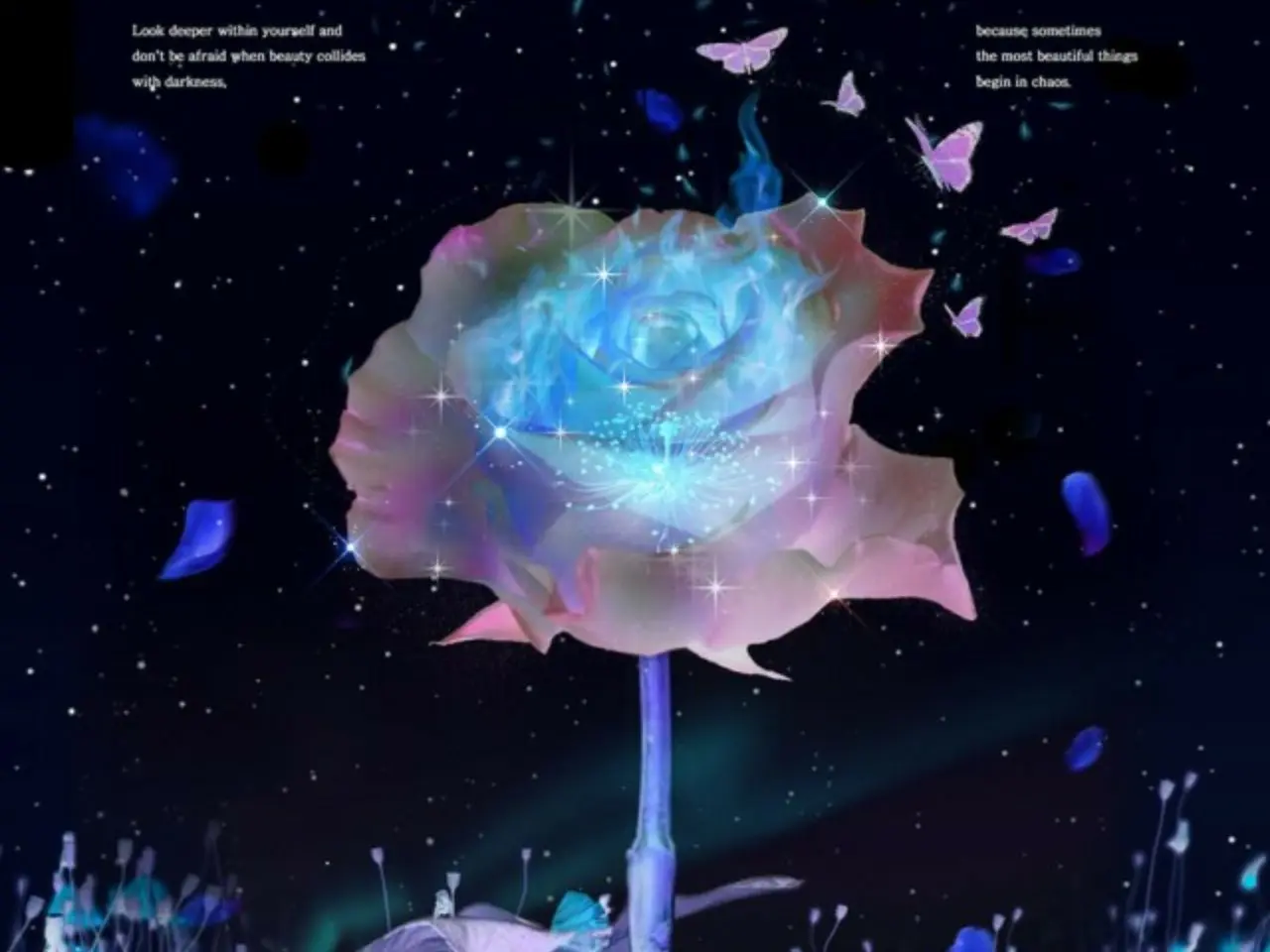 A beautiful rose-like flower is drawn along with the performance title "Chaos." The performance schedule is also written.