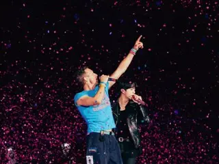 In the photo, JIN is seen performing on stage with Coldplay. The harmonious smiles of the two are impressive.