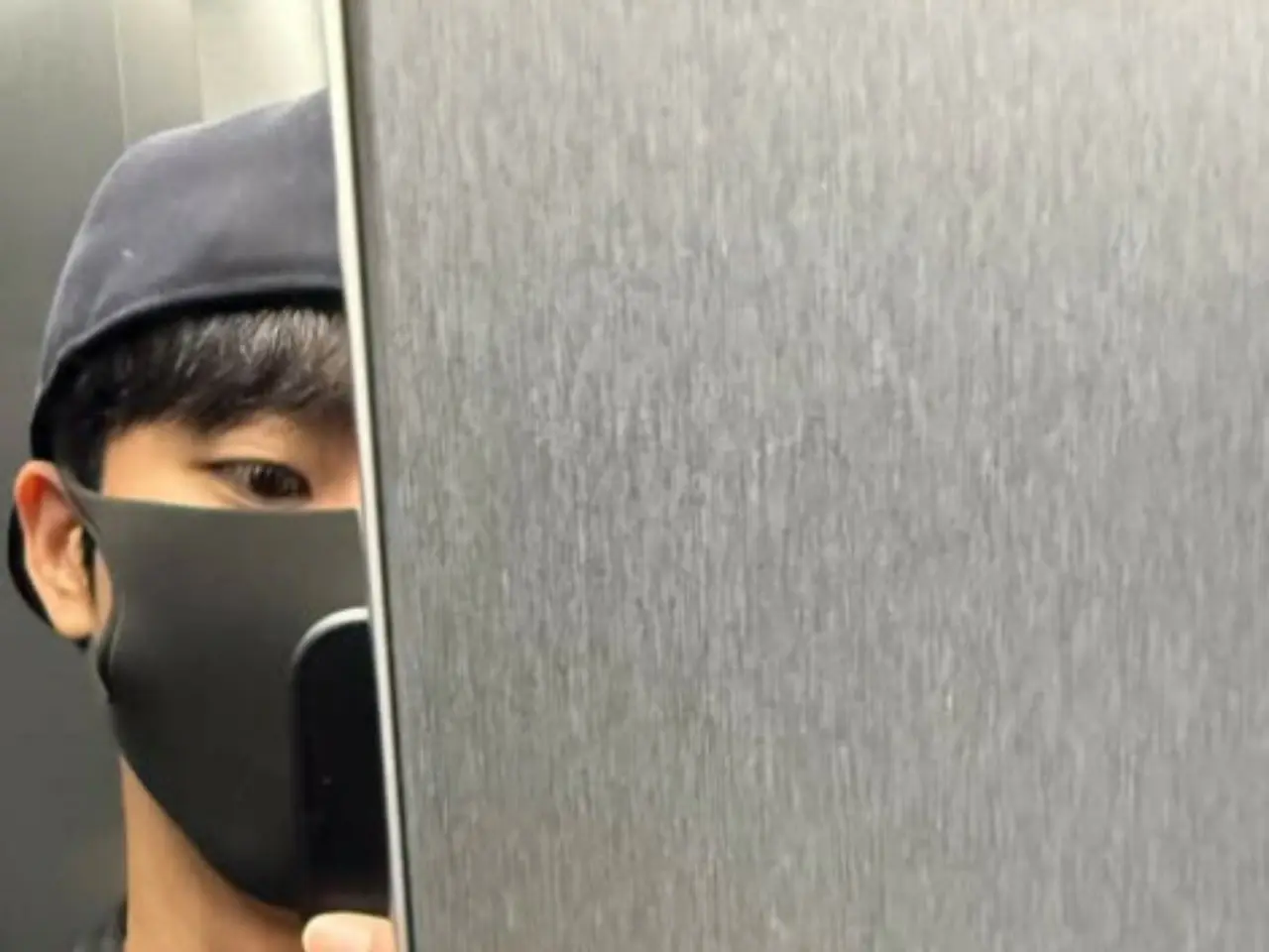 We have posted one photo. The photo shows Choi Jeong hyup taking a selfie. Choi Jeong hyup is standing in front of the elevator as it closes, with only half of his face showing.