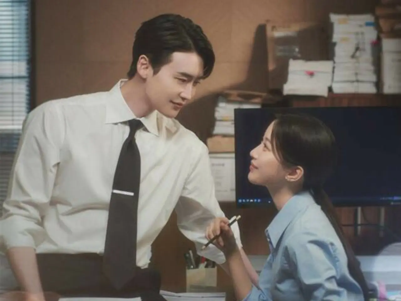 The photos show Ahn Joo Hyun (Lee Jung Seok) and Kang Hee Ji (Mun Ka Young) finding comfort in looking at each other despite being busy with work.