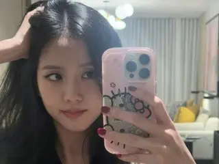 She seemed to lose focus as she made fans smile with her cute poses. She also updated them with a photo of herself in her stage costume, taken just before a performance. She also released a Hello Kitty mobile phone case.
