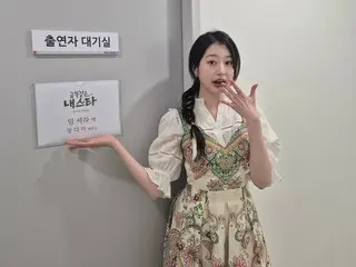 In the published photo, Jang Daah is seen posing in front of the waiting room. She is wearing a lace shirt and a gorgeous patterned dress.