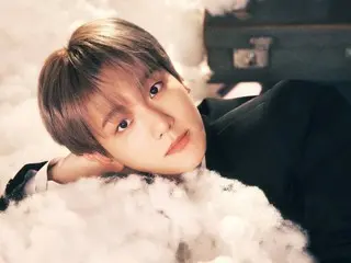 In the released photos, BAEKHYUN shows off a calm expression and relaxed pose in a space filled with clouds and vintage carry-on bags, creating a unique look.